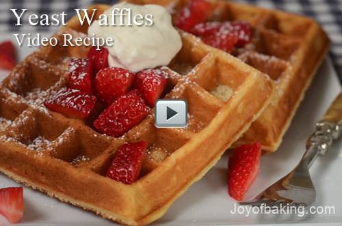 In North America we tend to make our Waffles using an artifical leavener, that is, with baking powder and/or baking soda. But there is another way, and that is to make Waffles using yeast. This type of Waffle has a mild “yeast” flavor. Their outside crust is wonderfully brown and crisp, yet inside they are light and fluffy. Besides loving their flavor and texture, I also love how you make the batter the night before, which entails just stirring all the ingredients together, and then just letting it sit in the refrigerator overnight. So next morning, all you need to do is heat your waffle iron and cook the Waffles. Perfect when you’re having overnight guests or for busy weekday mornings.